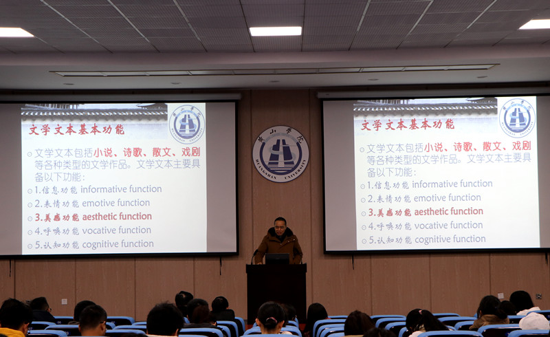 1月6日下午,“行知讲坛”第119讲在文端楼一楼报告厅举行。det365登录网站主页童兆升副教授应邀作了题为《古诗欣赏的层次性与翻译——以<江雪>为例》的报告,全校近200名师生参加了报告会,报告会由该院党委书记、院长黄先进主持。